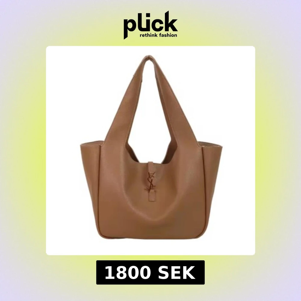 Snygg beige axelväska från Yves Saint Laurent med guldigt YSL-emblem framtill. Väskan har en stilren och rymlig design med breda axelremmar och är tillverkad i slätt skinn. Perfekt för dig som vill ha en klassisk och trendig väska med lyxig känsla.