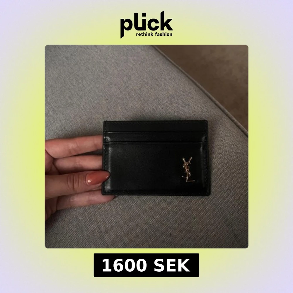 Säljer ett stilrent svart kortfodral från Saint Laurent i skinn med guldigt YSL-logo på framsidan. Perfekt för att hålla ordning på dina kort i en smidig och lyxig accessoar. Har lådan