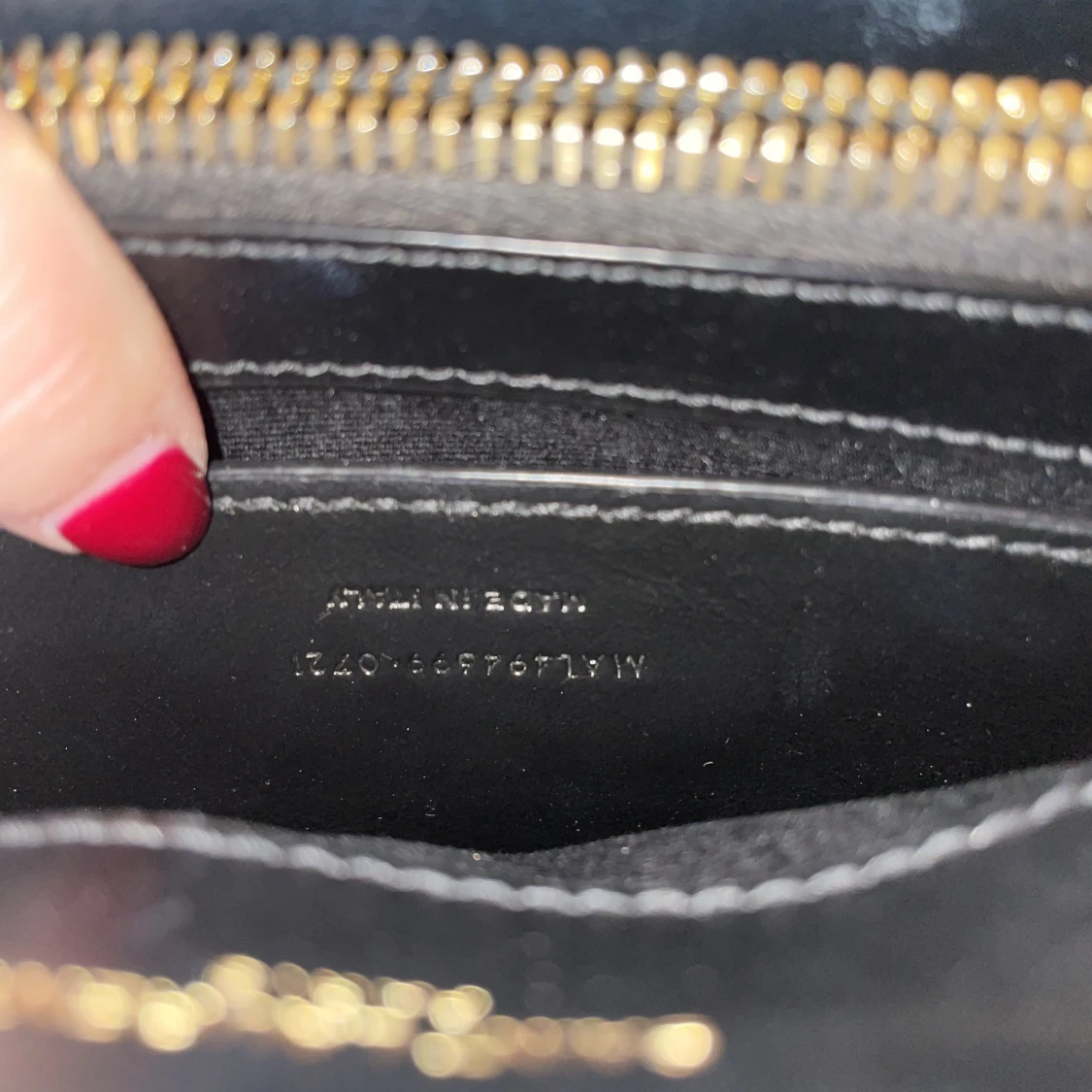 Saint Laurent väska - Saint Laurent väska modell nano. Svart läder. Nypris ca 14000. Säljer billigt då den har tydliga tecken på användning.✨