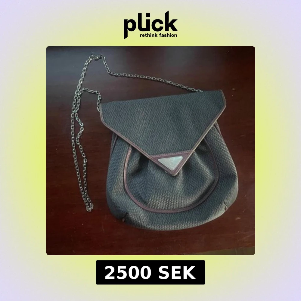 Säljer en svart klassisk Vintage axelväska från Yves Saint Laurent med kedjerem och triangelformad silverdetalj (har lagt till kedjan själv)framtill. Väskan är i grovvävd textil med mörkröda skinnkanter och har innerfack med dragkedja. Perfekt för dig som gillar klassisk men edgy stil.