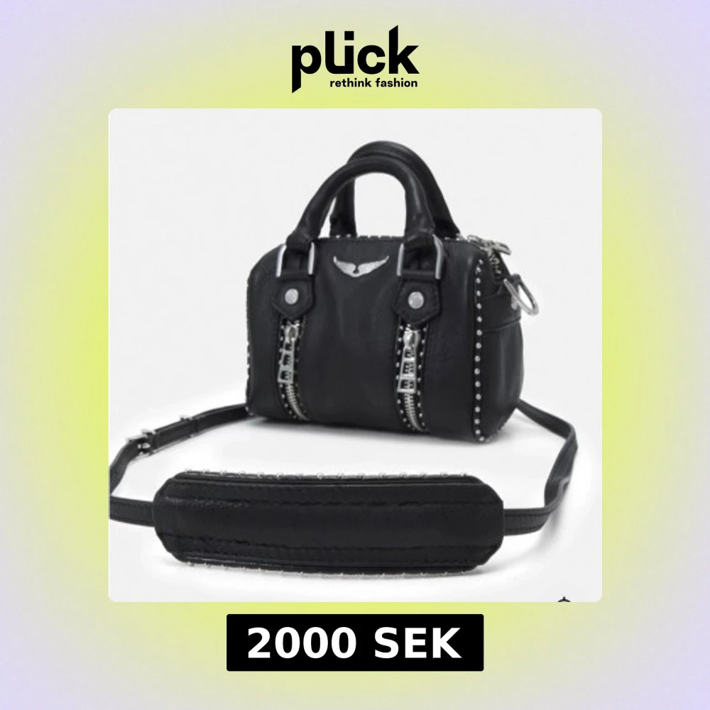 HandvÀska frÄn Zadig & Voltaire i skinn med silverfÀrgade dragkedjor, nitar och logga framtill. VÀskan har bÄde handtag och justerbar axelrem. Köpt förra Äret i london i Zadig butiken