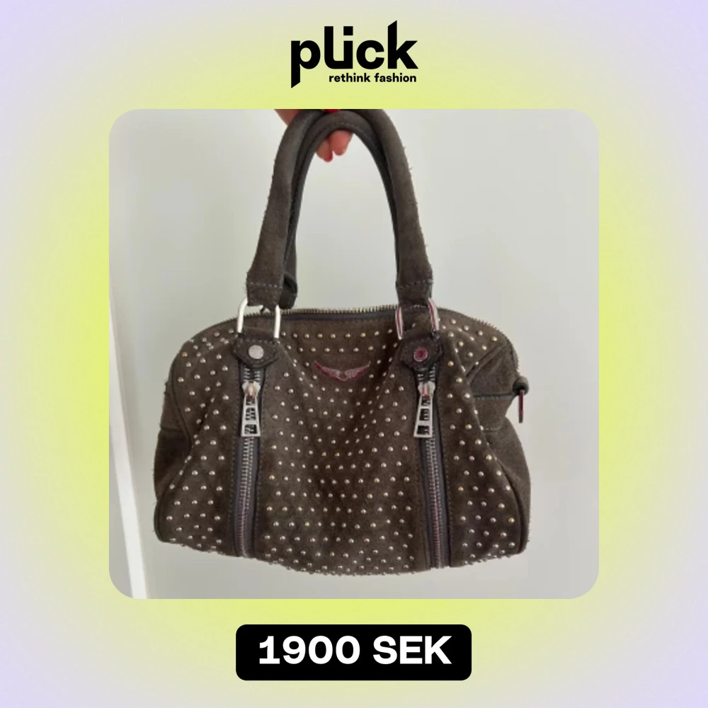 Sunny XS studs väska från Zadig. Nypris ca 5000 svenska kr. I grå mocka med silvriga studs. Använd men i fint skick
