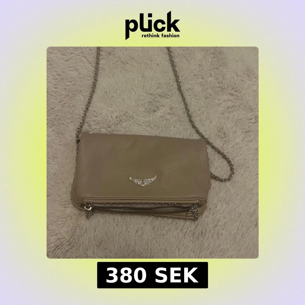 Snygg beige Zadig & Voltaire axelväska i skinnimitation med silverfärgad kedjerem och dekorativt emblem. Bilderna gör inte färgen på väskan faire utan den är med rosa beige i verkligheten. Köpt 2 år sedan