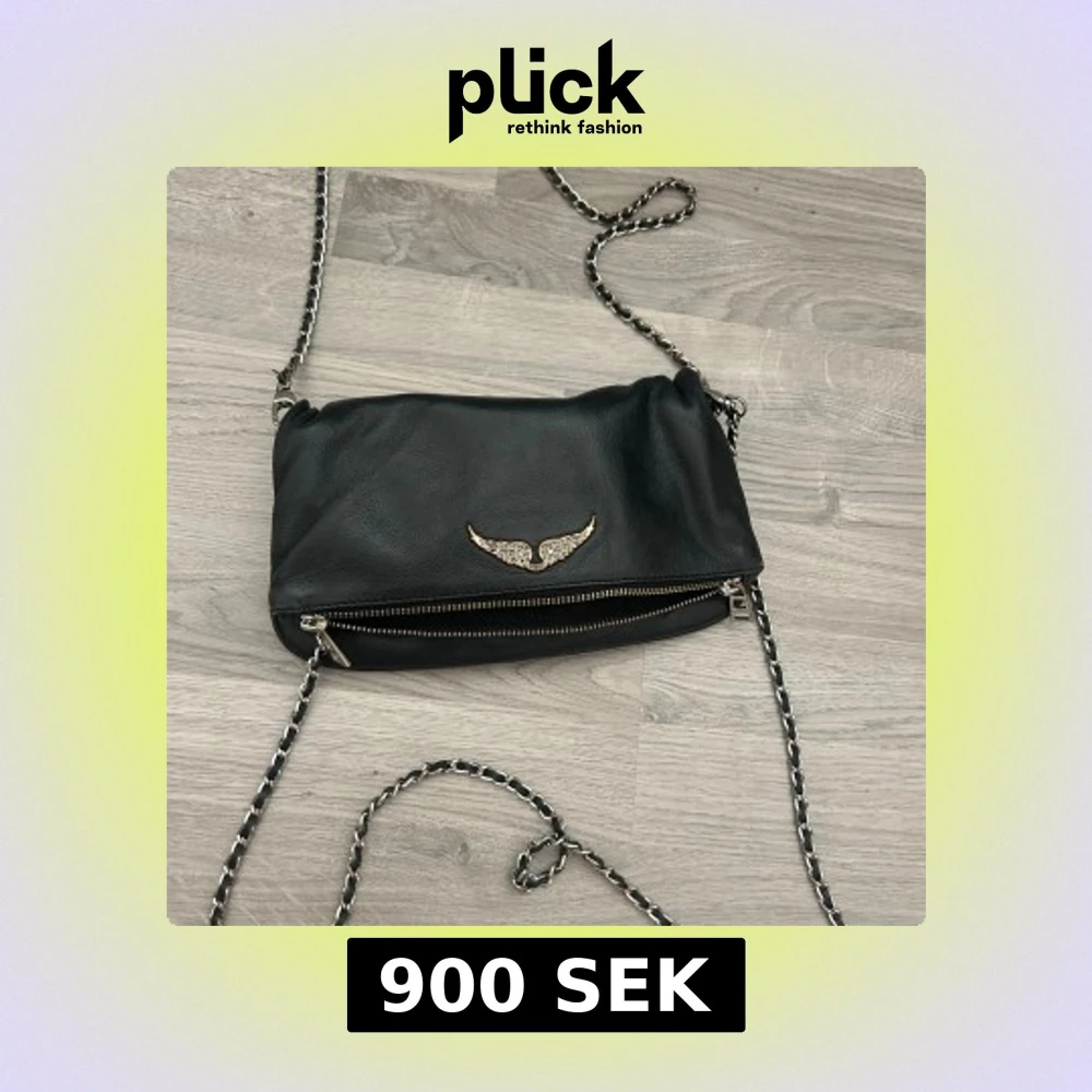Snygg svart axelväska i skinn från Zadig & Voltaire med kedjerem och dekorativt emblem med vingar framtill. Väskan har dragkedja både upptill och framtill, vilket ger en cool och praktisk look. Perfekt för dig som gillar stilrena accessoarer med edge.