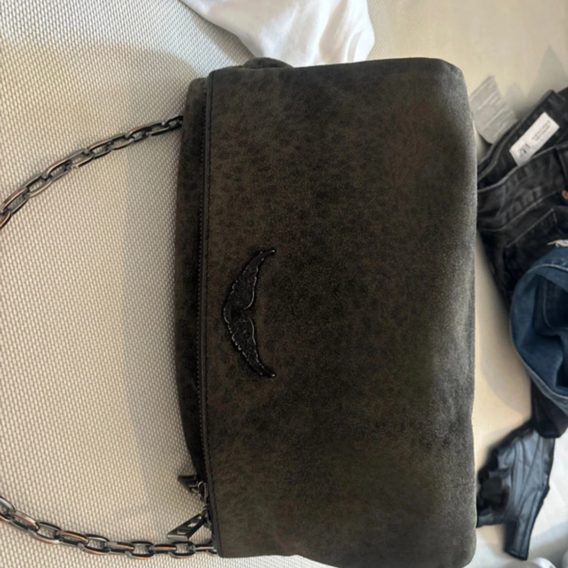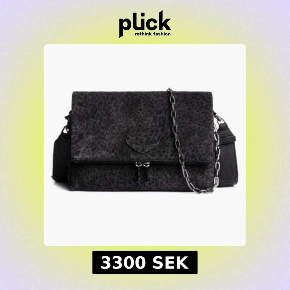 Cool svart axelväska från Zadig & Voltaire med leopardmönster och snygg kedjerem. Väskan har ett lock med broderad logga och dragkedja framtill. Materialet är mocka och skinn. Köpte den i Palma för 2,5 år sedan. För ungefär 4500/5000. Hör av dig om du vill se kvitto.