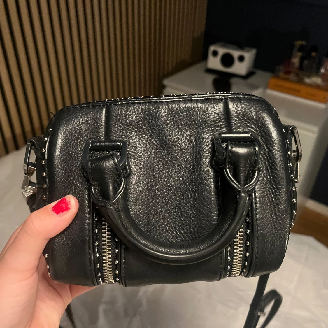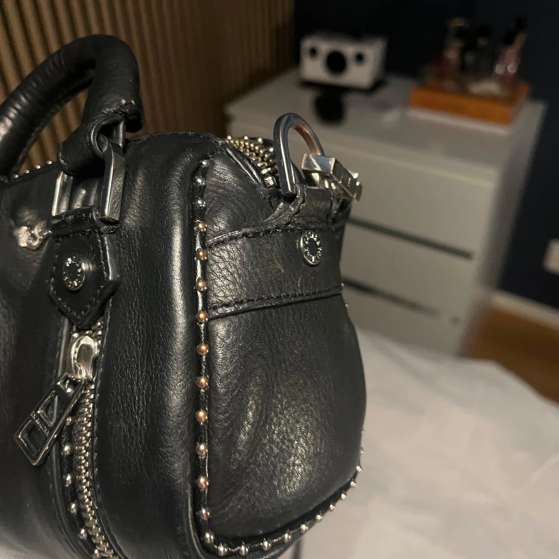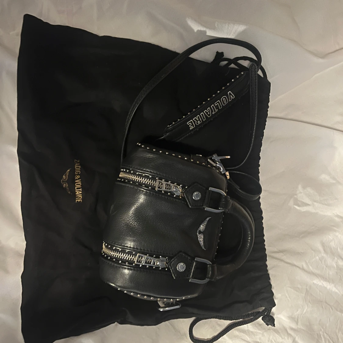Säljer min fina Zadig sunny nano studs väska, är använd och har defekter såsom vissa av det silvriga detaljerna har blivit brons färgade och ena bandet fäste har lossnat men är fixat (se sista bilden) säljer för 2000kr men kan diskutera priset och fråga privat om flera bilder!🙌🏻