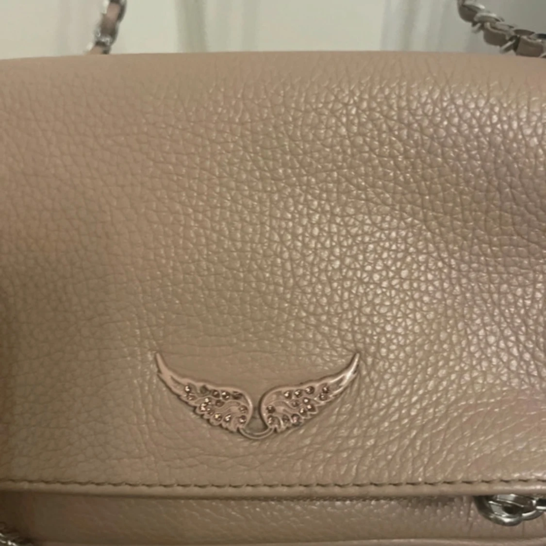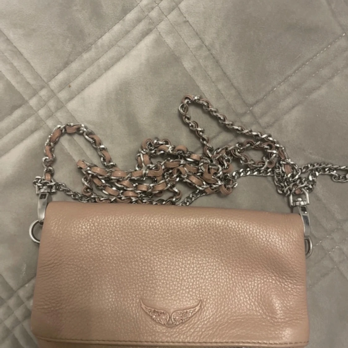 Jätte bra skick använt några gånger. Har både det lilla och det stora bandet. Det saknas en diamant eller vad det är på Zadig märket där framme på väskan.