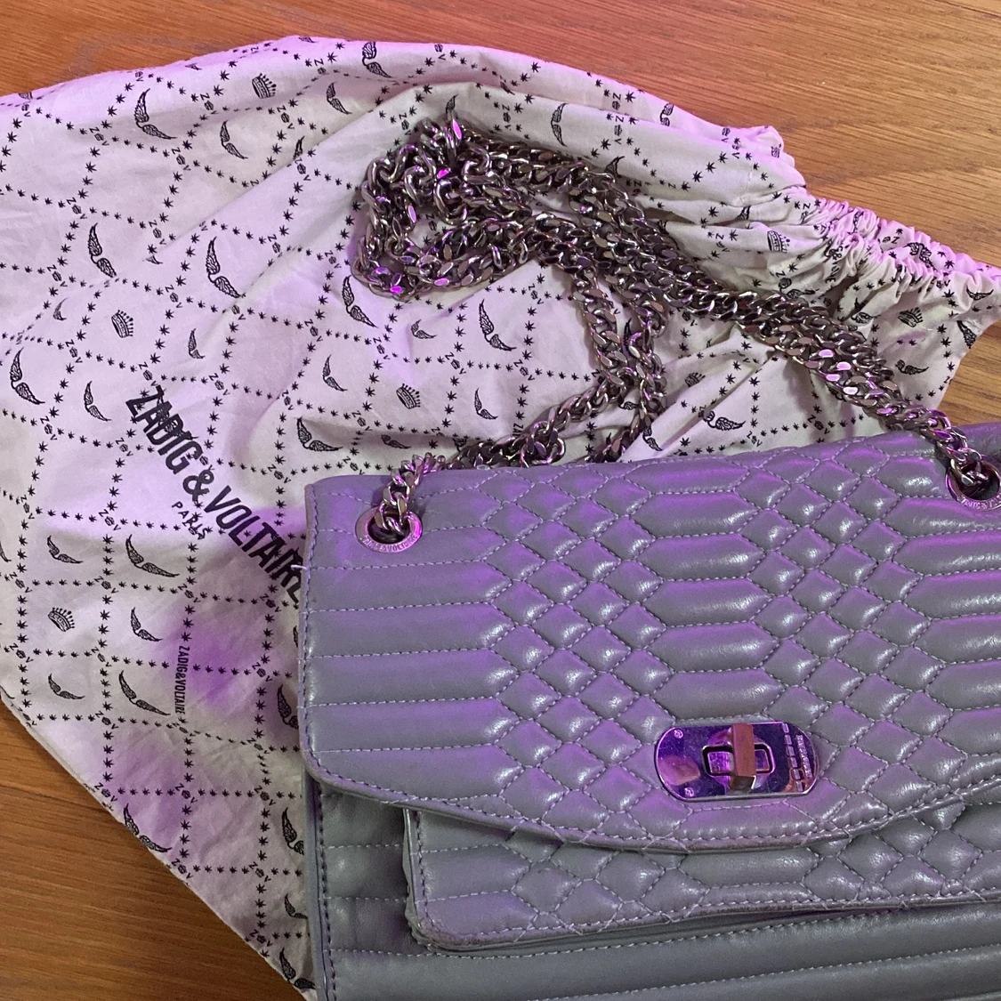 Zadig & Voltaire väska i modellen Skinny Love Mat Scales, grå. Väskan är stor o rymlig. Går att ha crossbody också.
