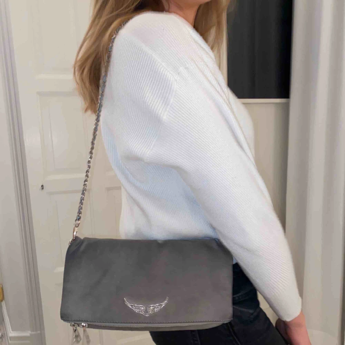 Zadig et Voltaire ”Rock Suede bag” grå säljes. NYPRIS 2950kr. Säljes pga använder inte längre. Möts upp i Stockholms innerstad, annars står köparen för frakt:) Pris kan diskuteras.