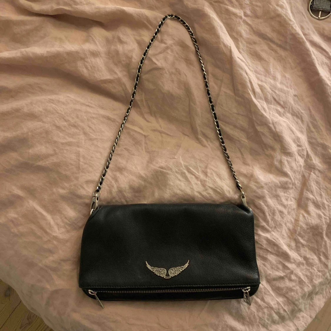 Äkta svart zadigväska i läder😁😁 väl använd men i bra skick medföljer dustbag och två kedjor (en lång och en kort) ❤️❤️ original pris 3 150kr frakt ingår
