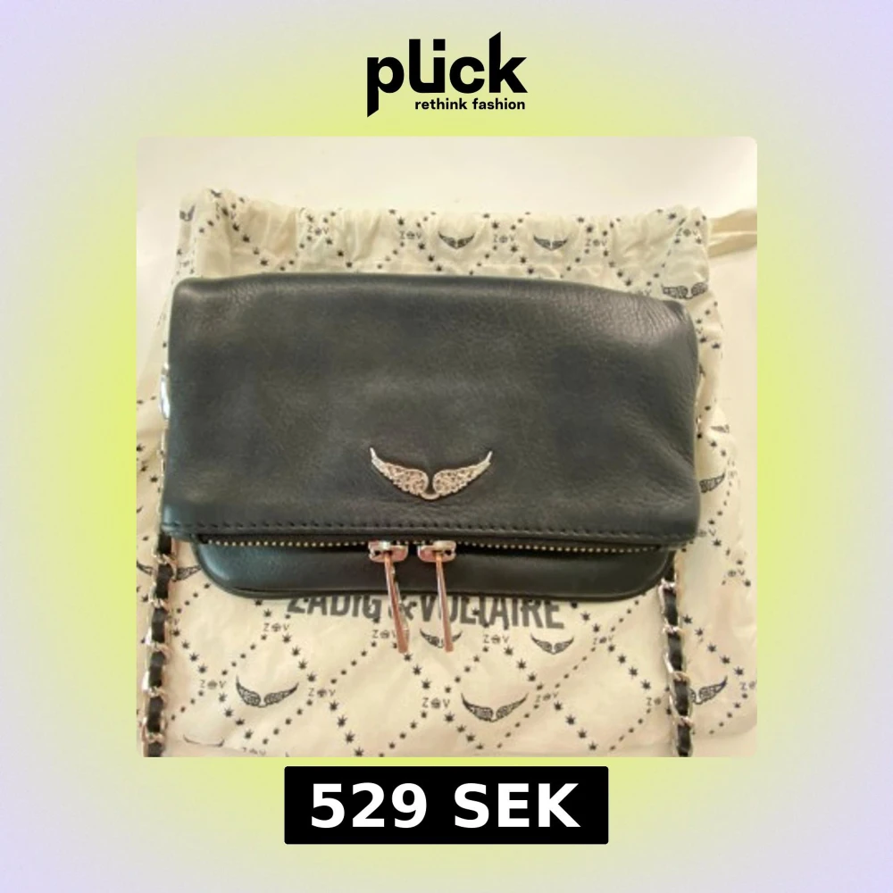 Snygg svart axelväska i skinn från Zadig & Voltaire med silverfärgade detaljer och kedjerem. Väskan har dubbla dragkedjor framtill, ett dekorativt vingemblem och en extra ficka med dragkedja på baksidan. Den är lite rostig på kedjorna därmed priset ❤️🥰