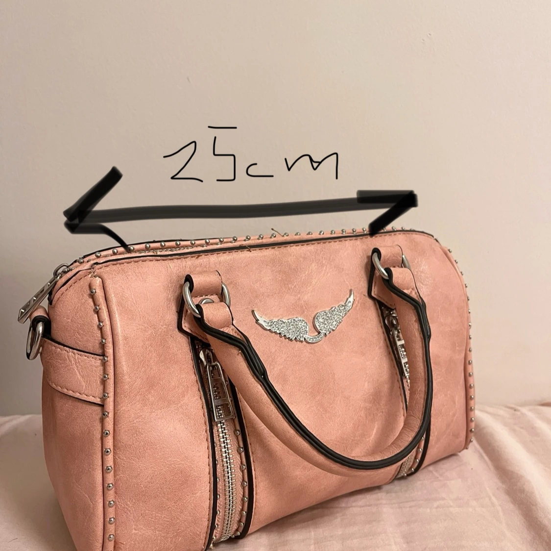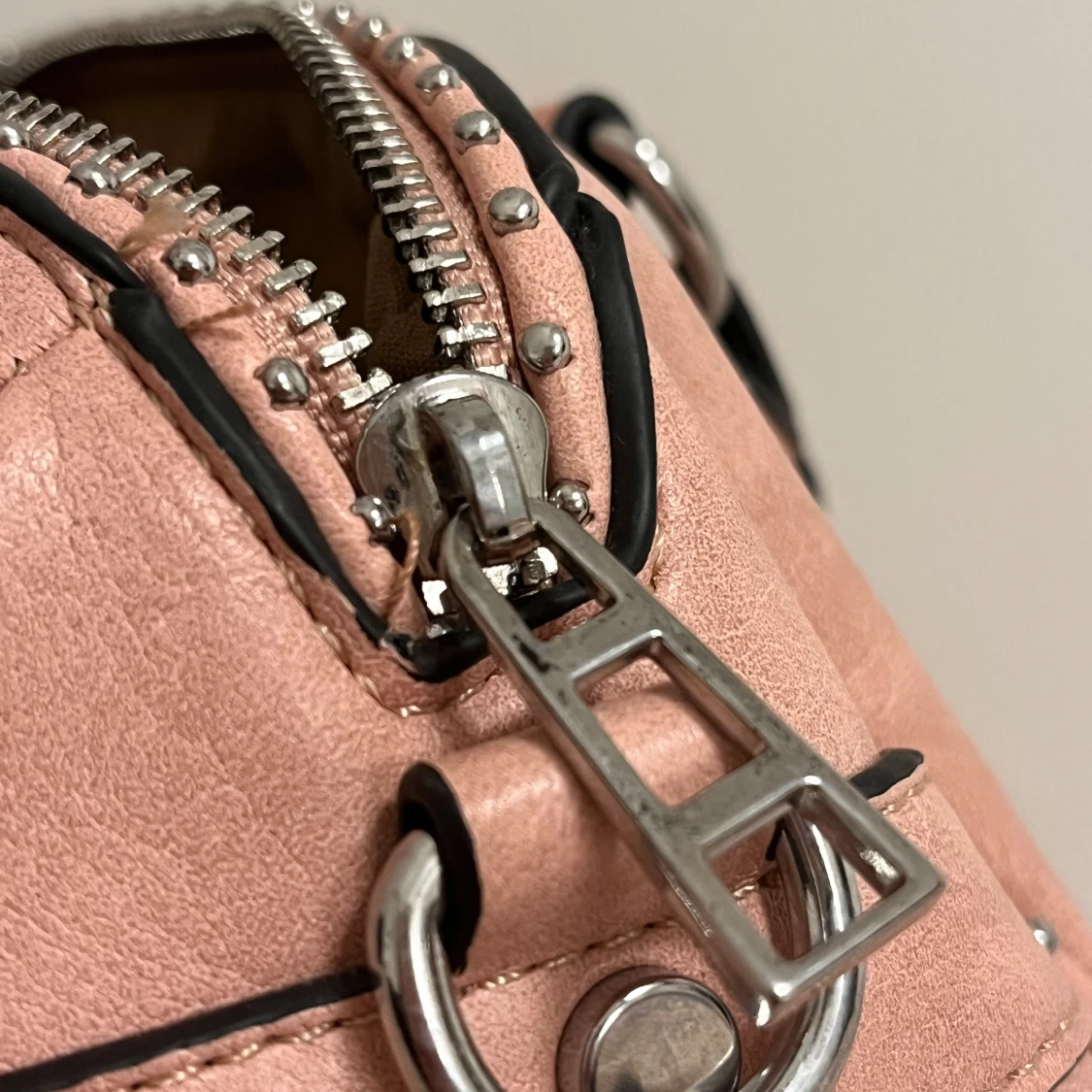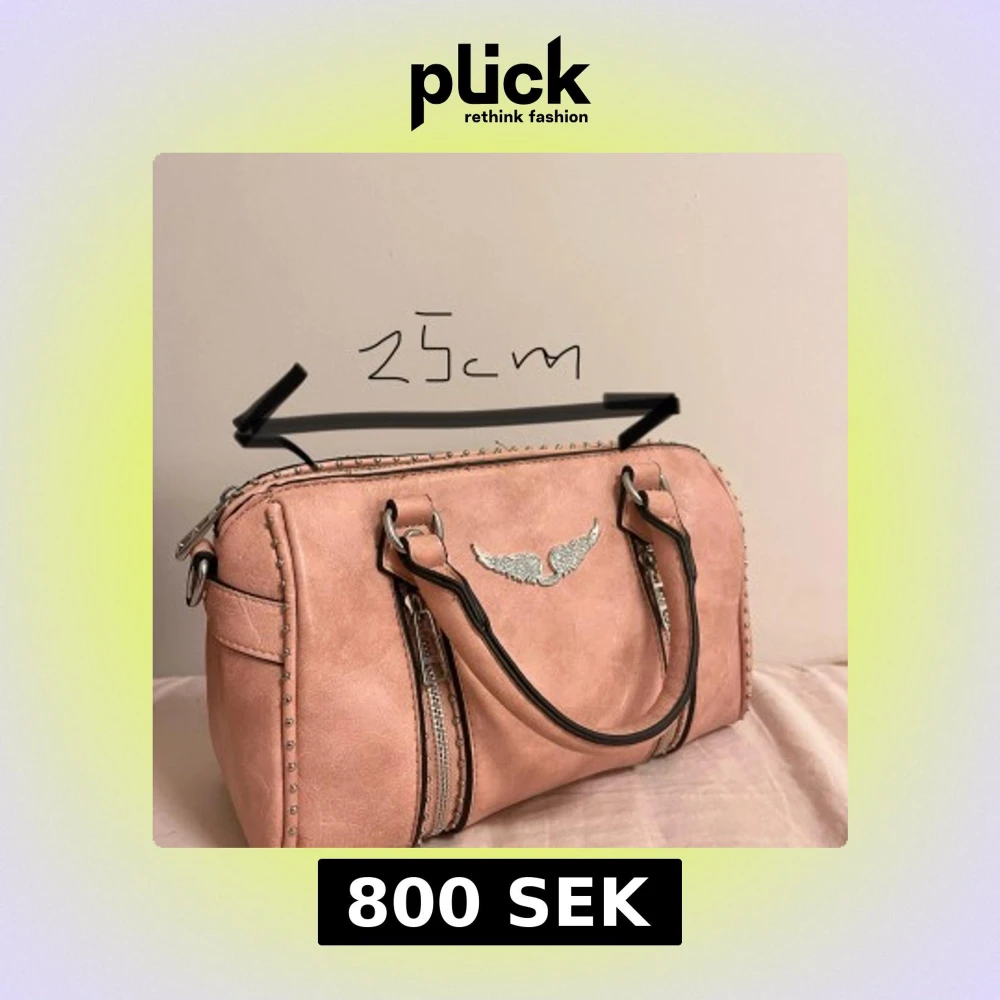 Jättesnygg väska som man får plats med mycket i!💗 Det finns några få trådar som man ser om man kollar noga men inget man tänker på. Lite skavanker på dragkedjan men inget man tänker på (se på bild). Man får även med ett axelband till.