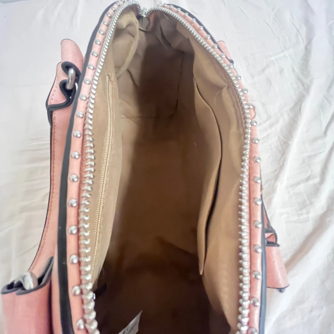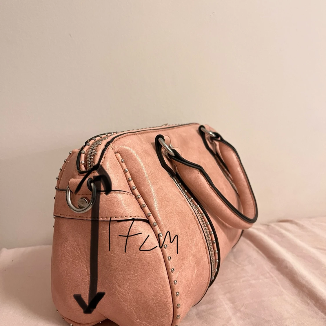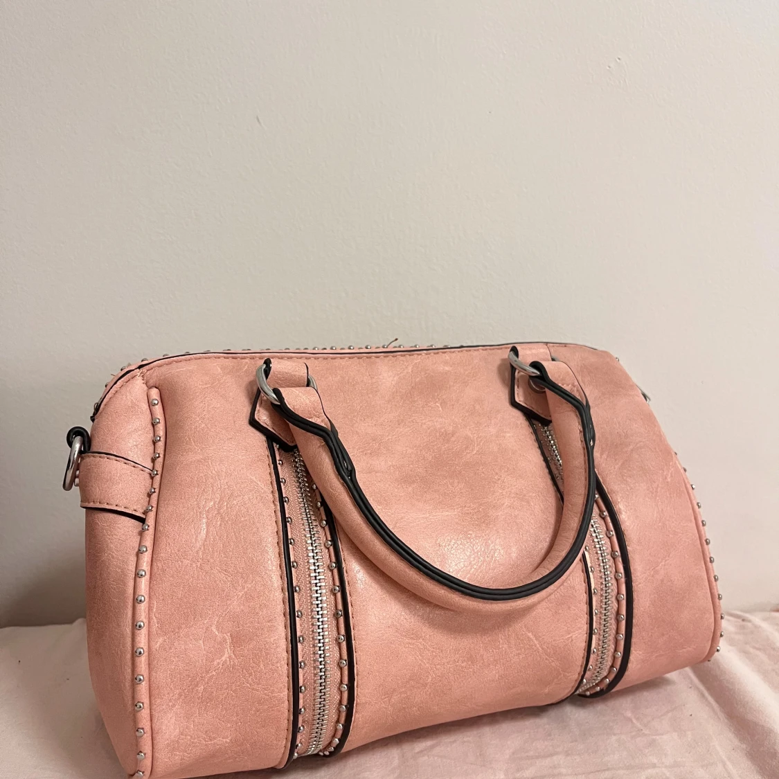 Jättesnygg väska som man får plats med mycket i!💗 Det finns några få trådar som man ser om man kollar noga men inget man tänker på. Lite skavanker på dragkedjan men inget man tänker på (se på bild). Man får även med ett axelband till.
