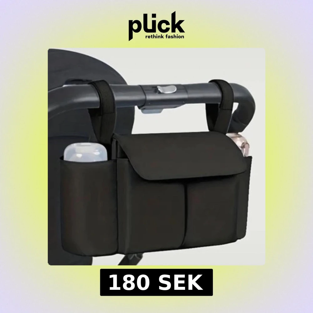 Praktisk svart vagnväska med flera yttre fickor, perfekt för att organisera småsaker. Väskan har en enkel, stilren design och fästs smidigt med remmar. Tillverkad i slitstark polyester som tål vardagens äventyr.