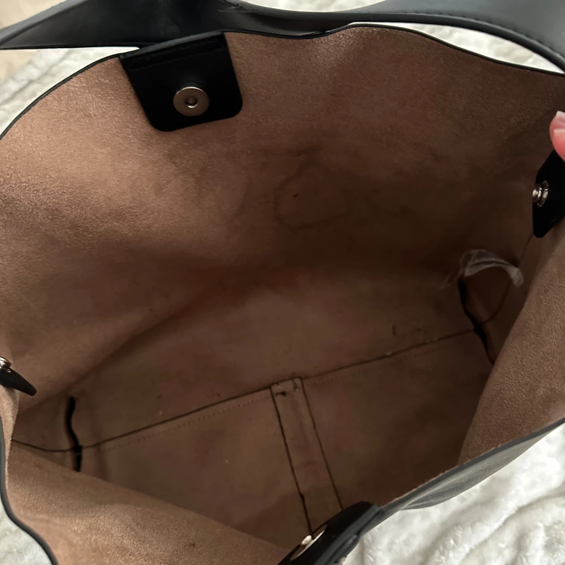 Från Zalando, den är använd med små slitningar vid axelrem, men inte märkvärdig. Med följ av en inre påse som kan sättas fast med knappar för extra avdelning💕