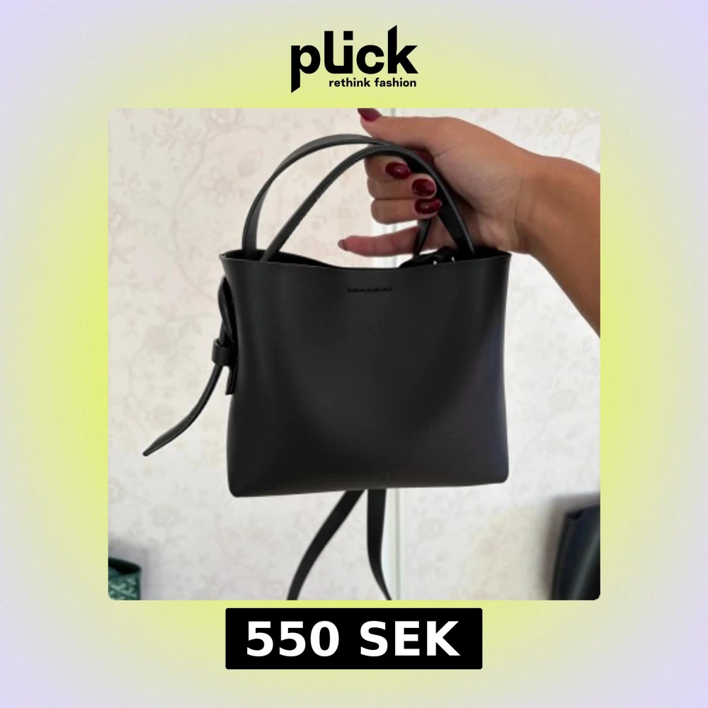 Svart handväska från ARKET i slätt skinn. Väskan är perfekt storlek för det viktigaste och passar till alla snygga outfits i höst😍. Väskan är använd ett fåtal gånger och priset går att diskutera!!😇
