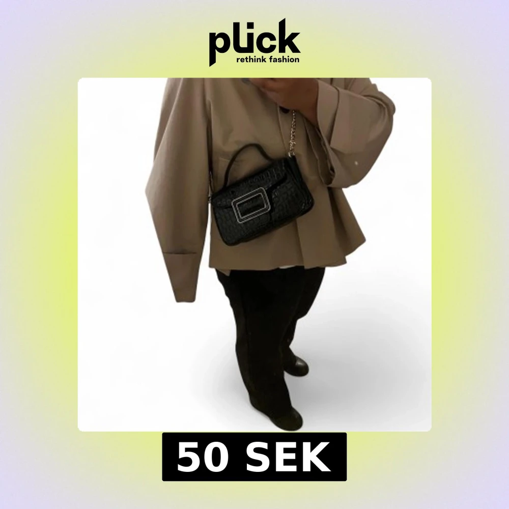 Snygg svart axelväska med krokopräglat mönster och en stor guldfärgad spännesdetalj framtill. Väskan har både handtag och kedjerem, vilket gör den enkel att bära på olika sätt. Perfekt accessoar för att lyfta din outfit.