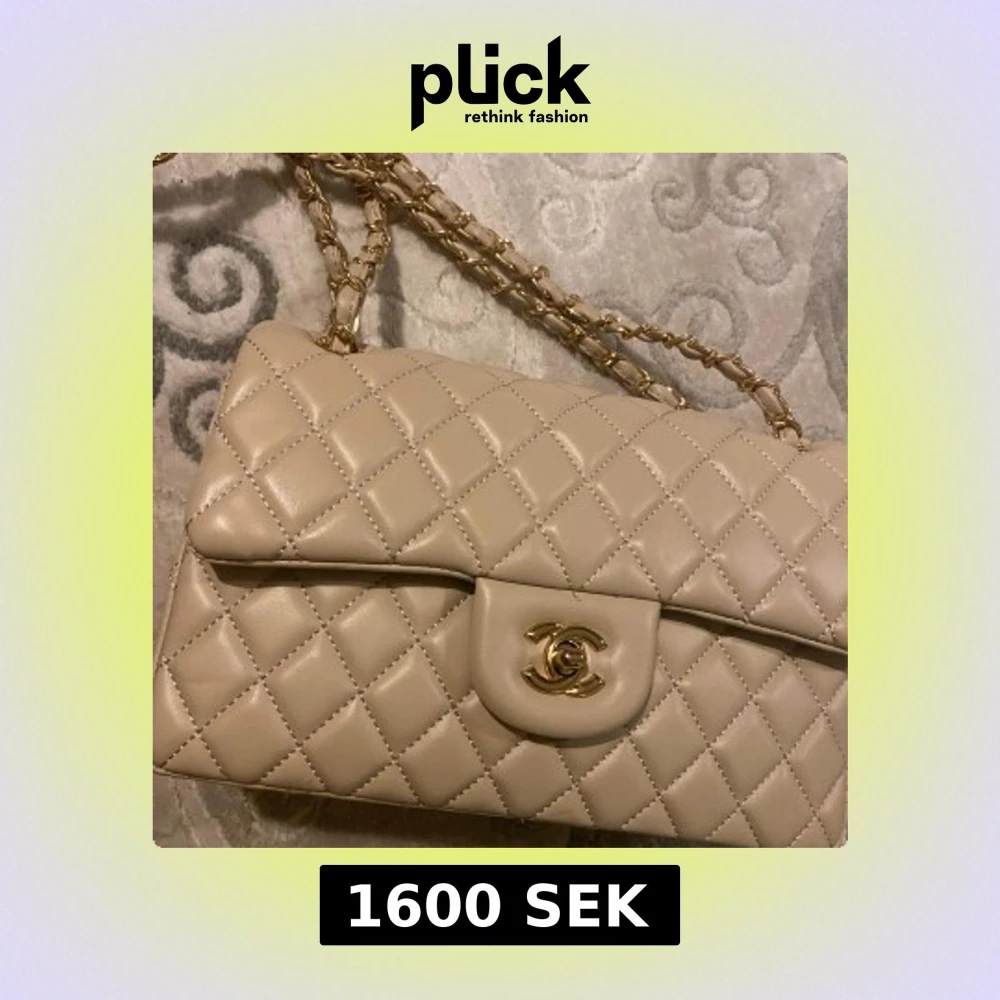 Supersnygg beige axelväska guld detaljer. Väskan har kedjerem med skinninslag och innerfack med dragkedja. Perfekt för dig som vill ha en ikonisk och lyxig accessoar med tidlös design. Öppen för prisförslag!