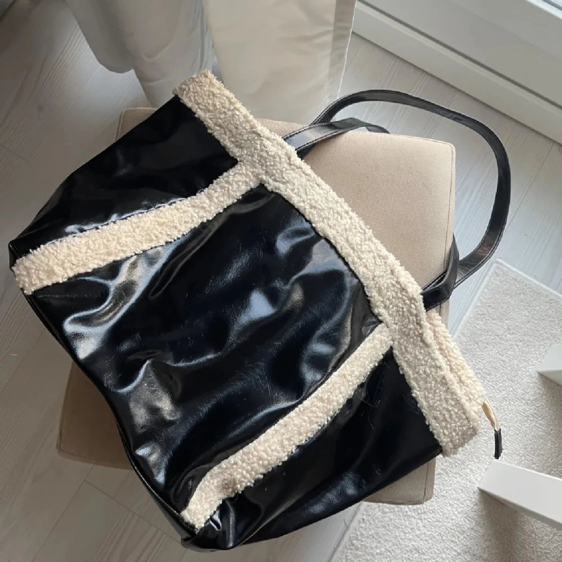 Fin väska, perfekt till skolan då den rymmer mycket! Skinn och ull imitation🩵