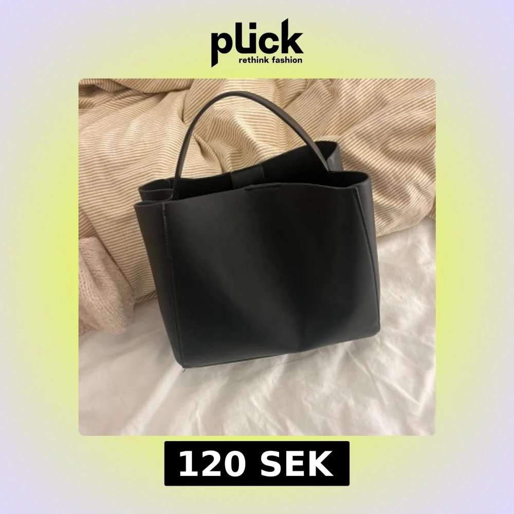 Stilren svart handväska från Gina Tricot i slät skinnimitation. Väskan har ett rymligt huvudfack, innerficka med dragkedja. Fåtall gånger använd