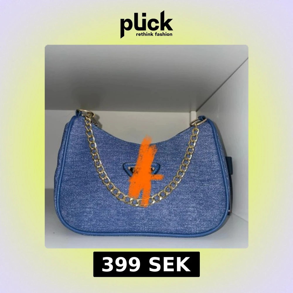 Snygg axelväska i blått jeanstyg med en chunky guldfärgad kedja som detalj. Väskan har en mjukt rundad form och blå kantband. Perfekt för dig som vill ha en trendig och stilren accessoar till din outfit. HELT NY!!!