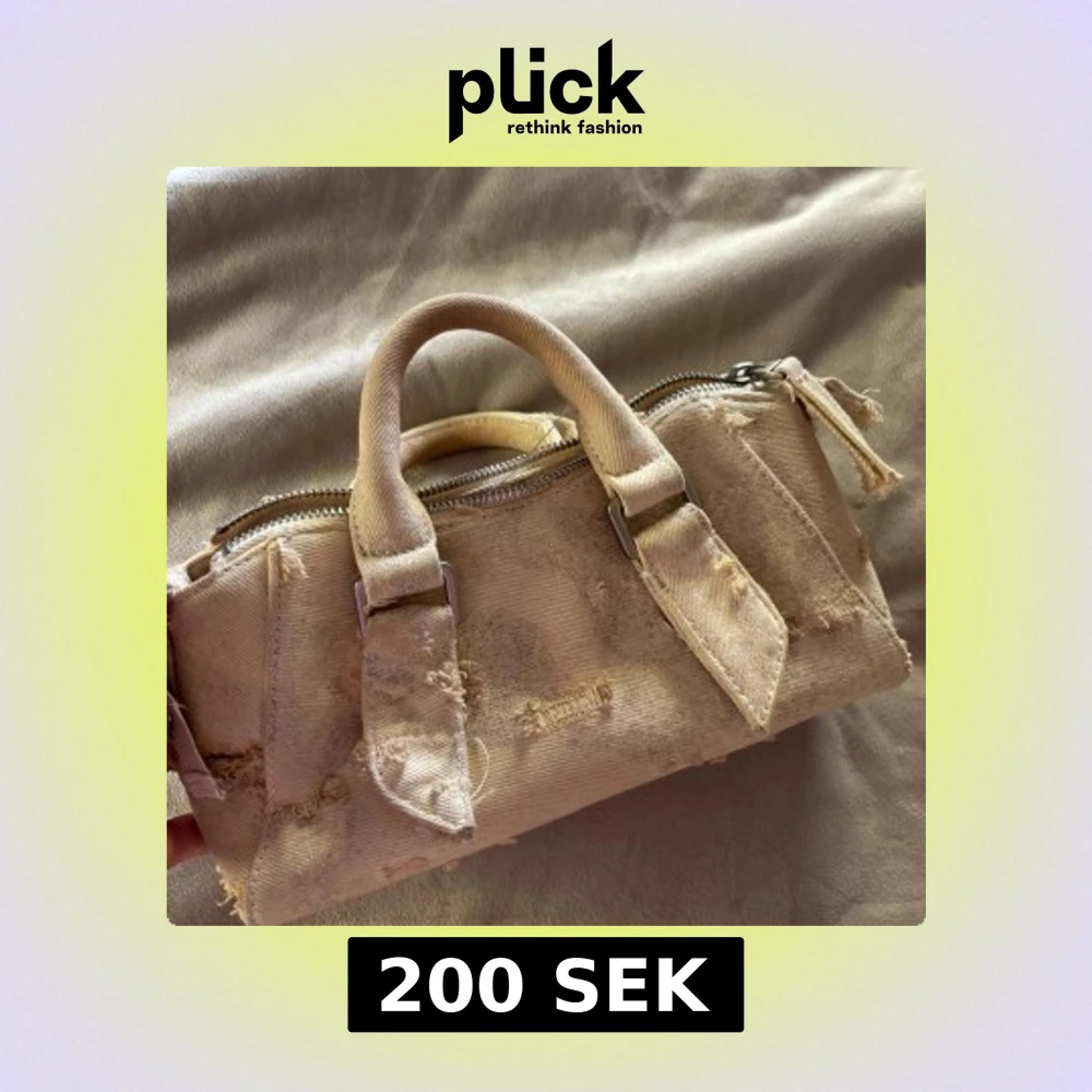 beige handväska i jeansmaterial med slitna detaljer från Zara. Köpte för 350kr säljer för 200kr🩷🩷