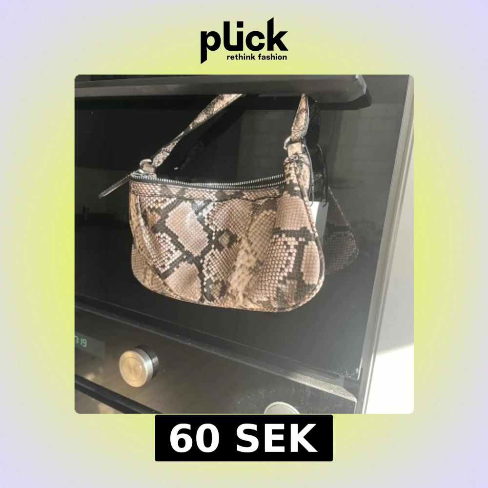 Säljer en snygg axelväska med ormmönster i beige och bruna toner. Väskan har dragkedja upptill och en kort axelrem. Perfekt för att lyfta vilken outfit som helst med lite edge.