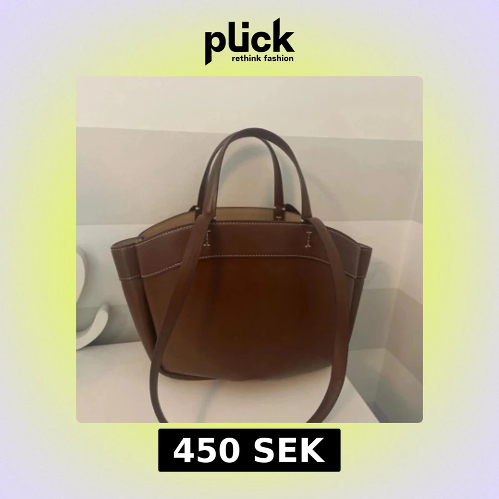 Snygg brun axelväska från Zara i skinn med stilrena vita sömmar. Väskan har både handtag och axelrem, samt ett stort huvudfack och en innerficka med dragkedja. Perfekt för dig som vill ha en rymlig och trendig väska till vardagen.