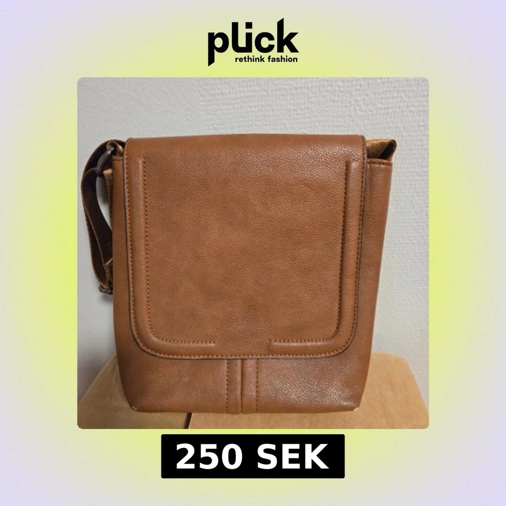 Snygg brun axelväska i skinn med stilren, fyrkantig form och praktiskt lock. Väskan har flera fack inuti, inklusive ett med dragkedja, och en justerbar axelrem. Perfekt för dig som vill ha en klassisk och enkel väska med plats för det viktigaste.