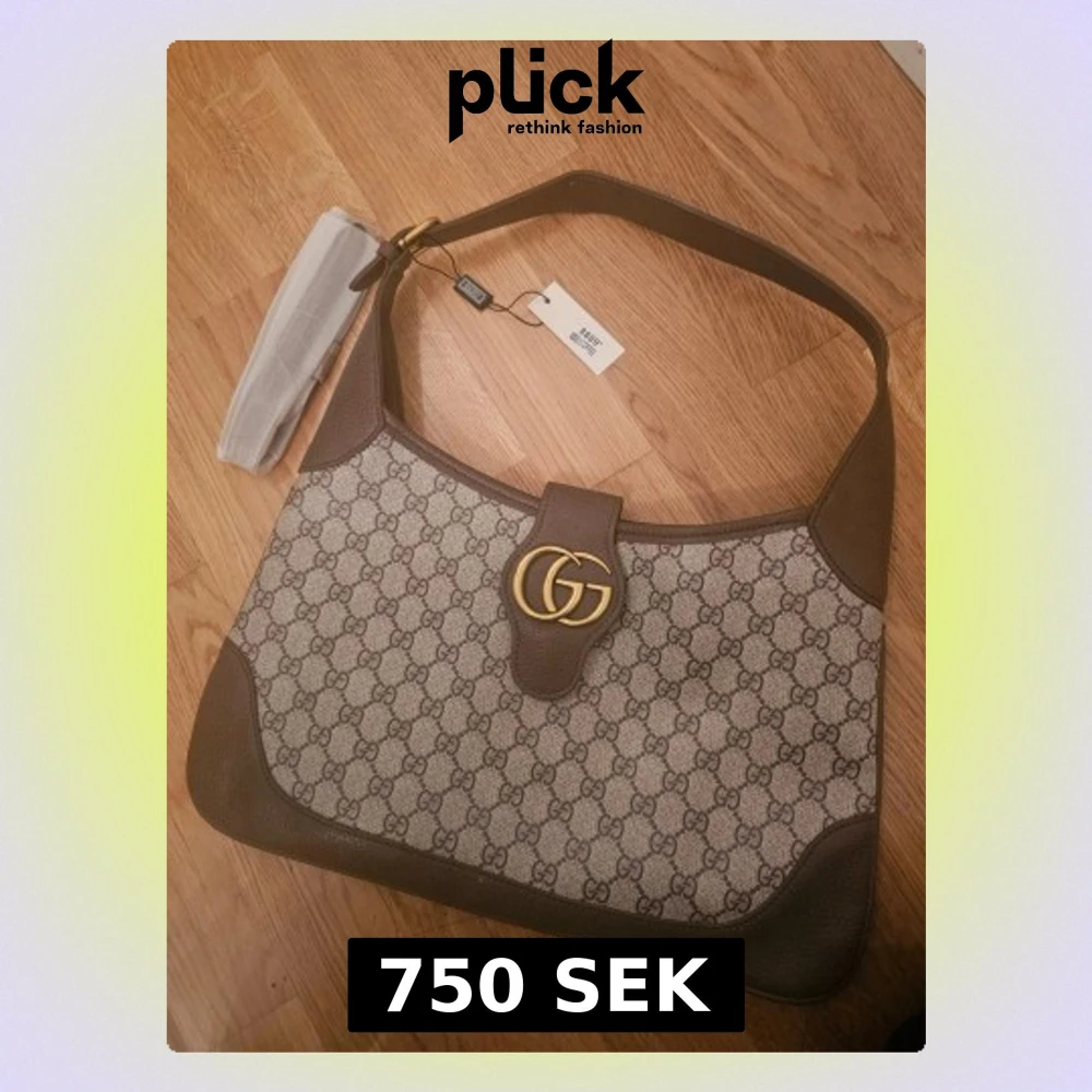 Snygg axelväska från i beige och brunt med klassiskt GG-mönster och guldfärgad logodetalj framtill. Väskan har bred axelrem, insida med fack och dragkedja, samt detaljer i skinn. Perfekt för dig som vill ha en ikonisk designerbag med plats för allt du behöver.