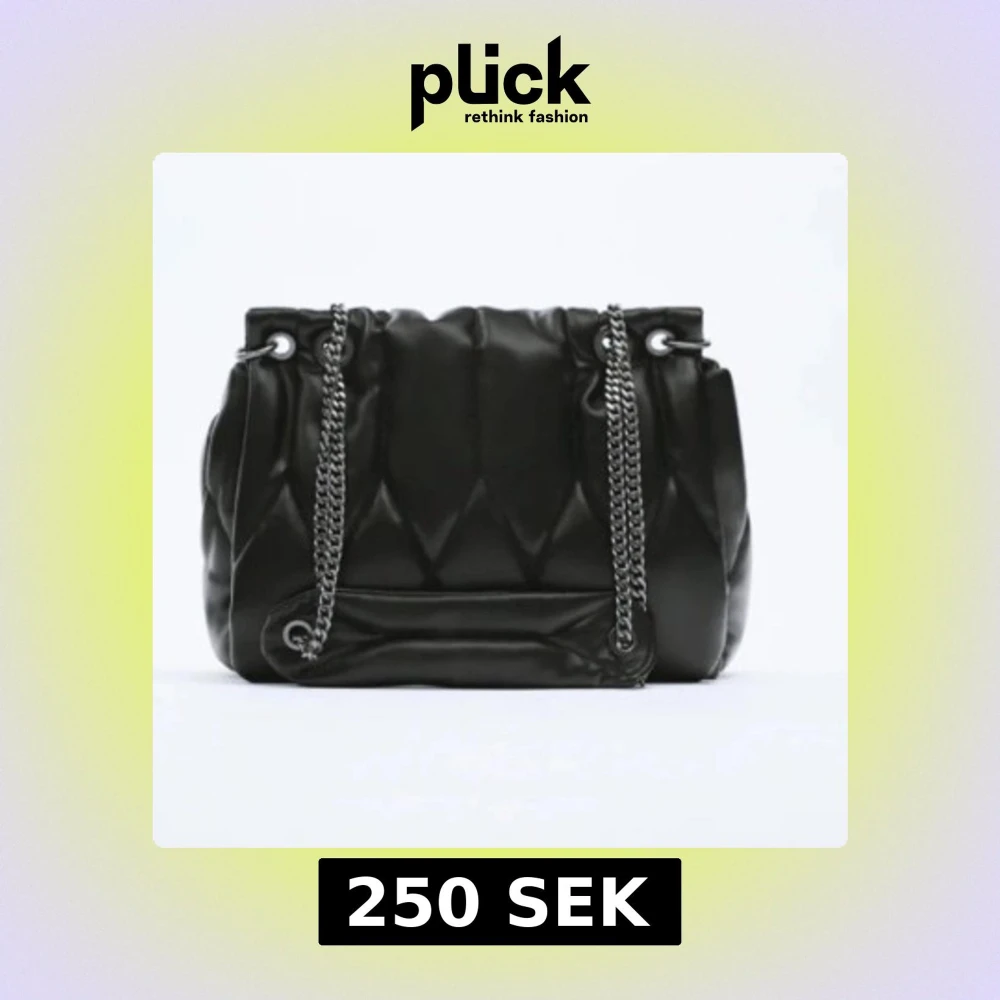 Stilren svart axelväska med quiltad design och silverfärgade kedjor som axelrem. Väskan är i nysick då den används endast ett par fåtal gånger.
