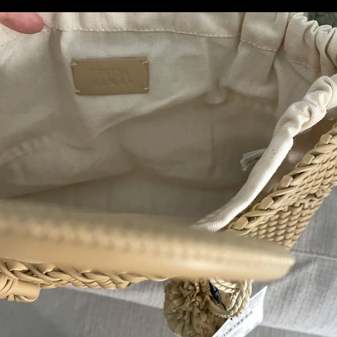 Snygg shoppingväska från Zara i beige flätad design. Ny med prislapp