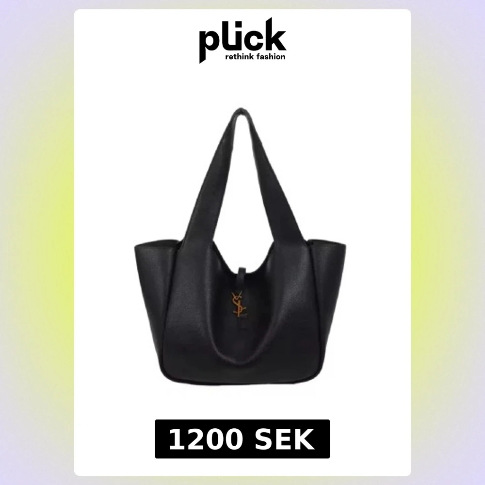 Snygg svart axelväska från Saint Laurent i mjukt skinn med guldigt YSL-emblem framtill. Väskan har breda axelband och en stilren, modern form som gör den till ett statement piece. Perfekt för dig som gillar lyxiga accessoarer med ikonisk design.