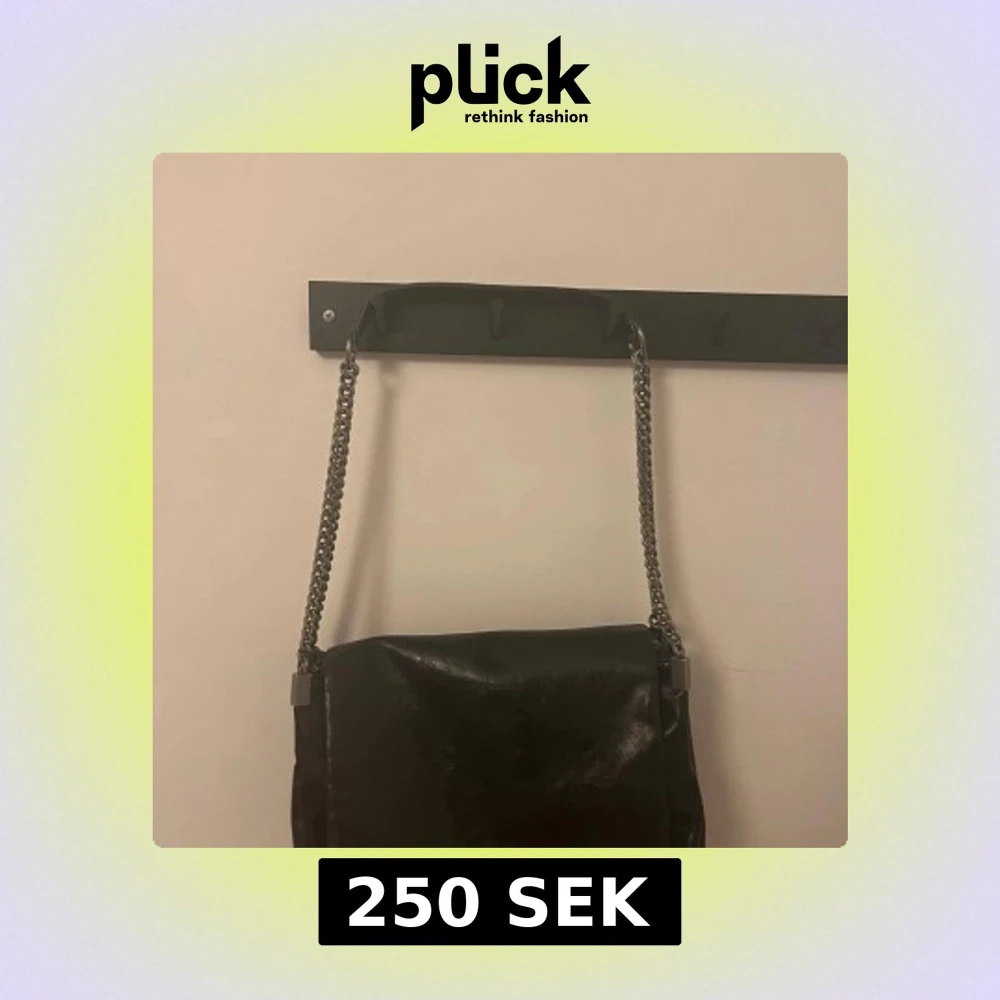 Snygg svart axelväska i skinn med silverfärgad kedjerem. Väskan har lock med magnetknäppning och ett stort huvudfack med dragkedja samt flera innerfack. Perfekt storlek för det viktigaste och ger en cool vibe till din outfit.