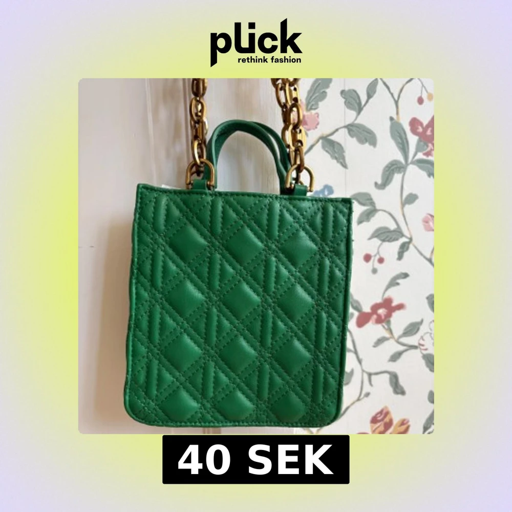 Grön axelväska i quiltat veganskt skinn med guldfärgade kedjedetaljer och magnetlås. Sparsamt använd och i fint skick.