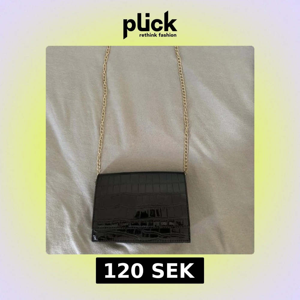 Snygg svart axelväska med krokopräglat mönster och guldfärgad kedja som axelrem. Väskan har ett stilrent och elegant utseende med magnetlås och flera fack inuti. Perfekt för dig som vill ha en trendig och praktisk väska till mobilen och småsaker.