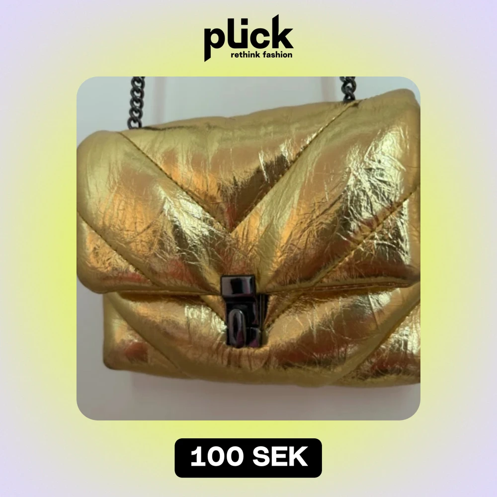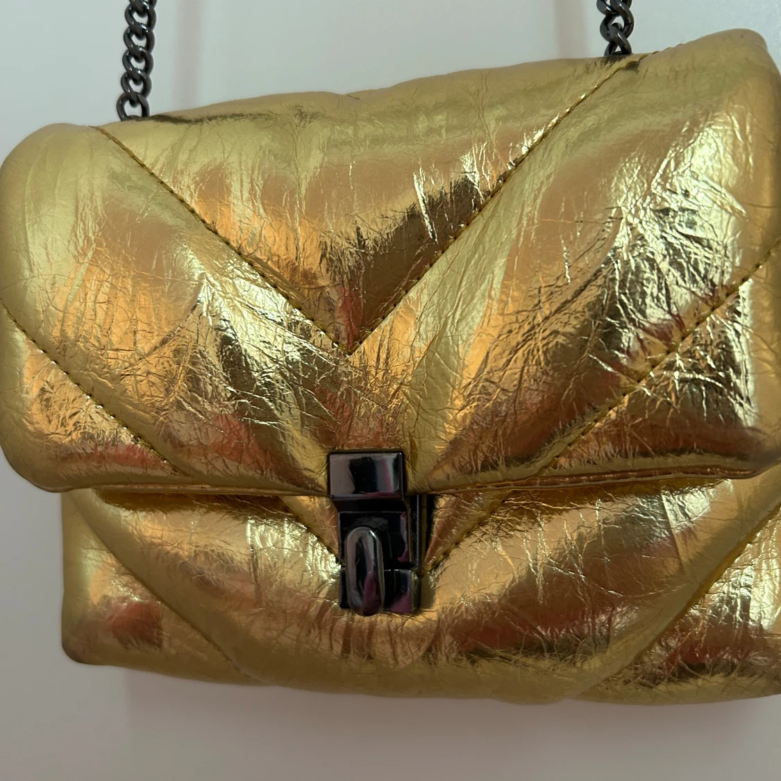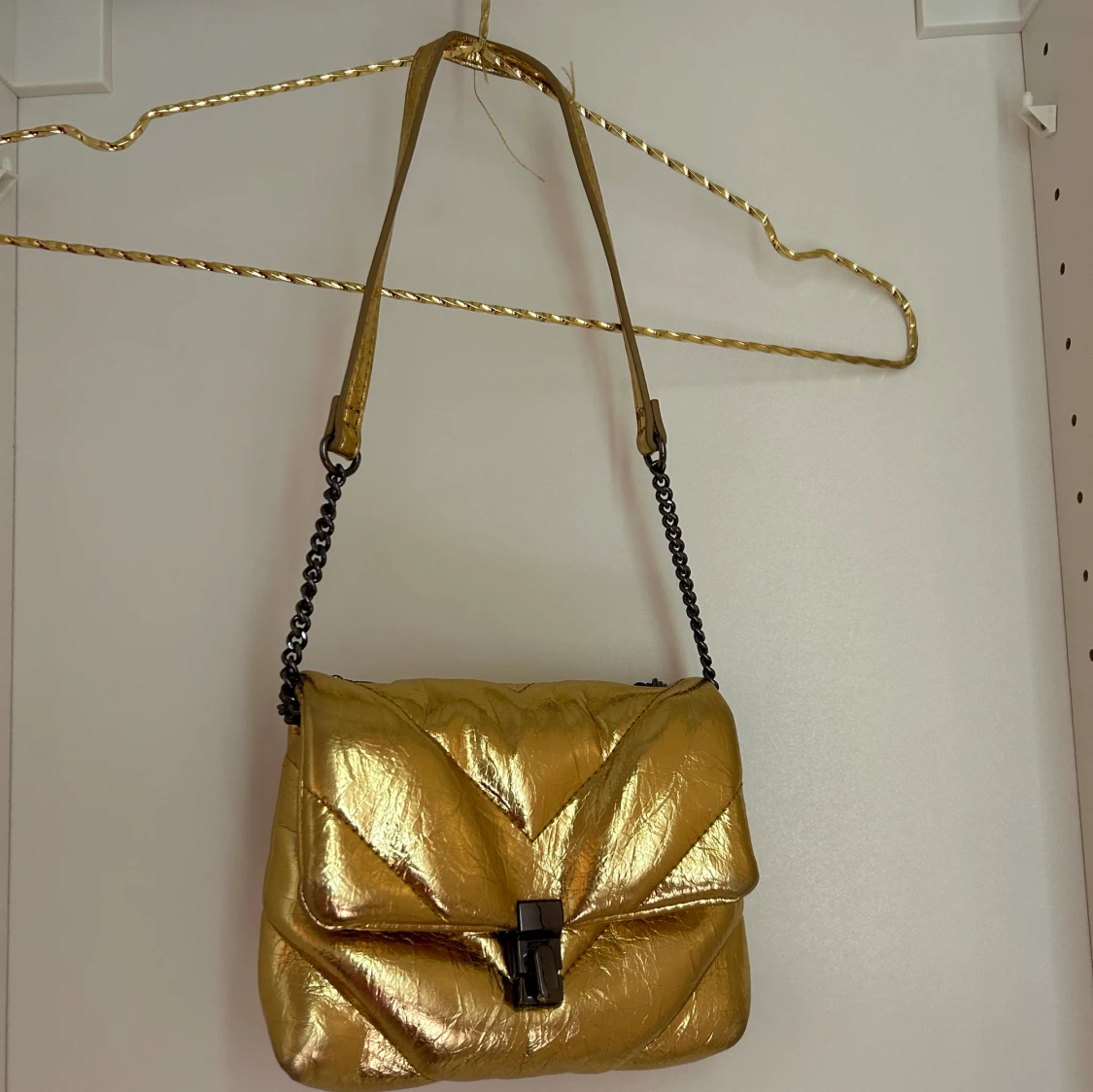 Guldiga liten väska från zara. Inte använt mycke. Går o ha den längre o kortare.