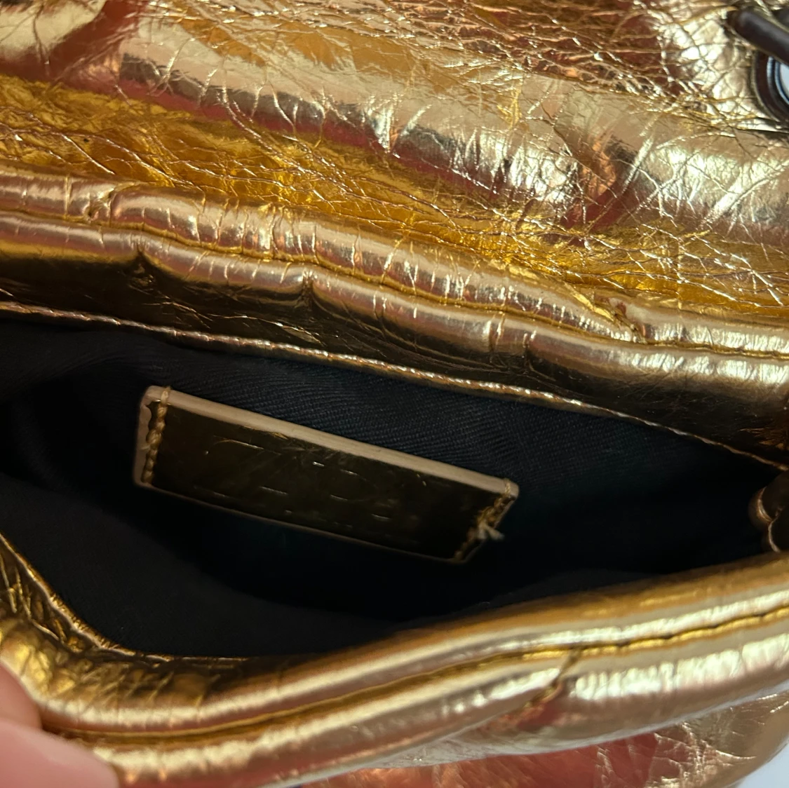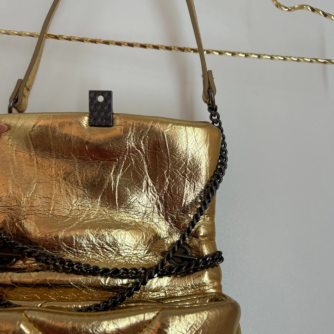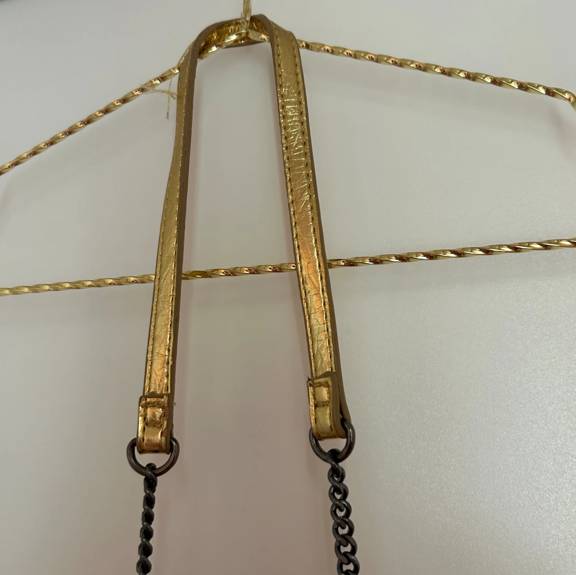 Guldiga liten väska från zara. Inte använt mycke. Går o ha den längre o kortare.