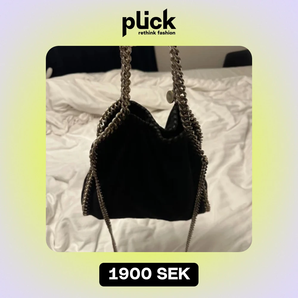 En perfekt mini väska från Stella McCartney i svart och guld (dock har färgen på kedjorna tonats bort). Inhandlad på plick för ca 1 år sen. Men nu får den komma till ett nytt hem som den kommer till användning mer!!