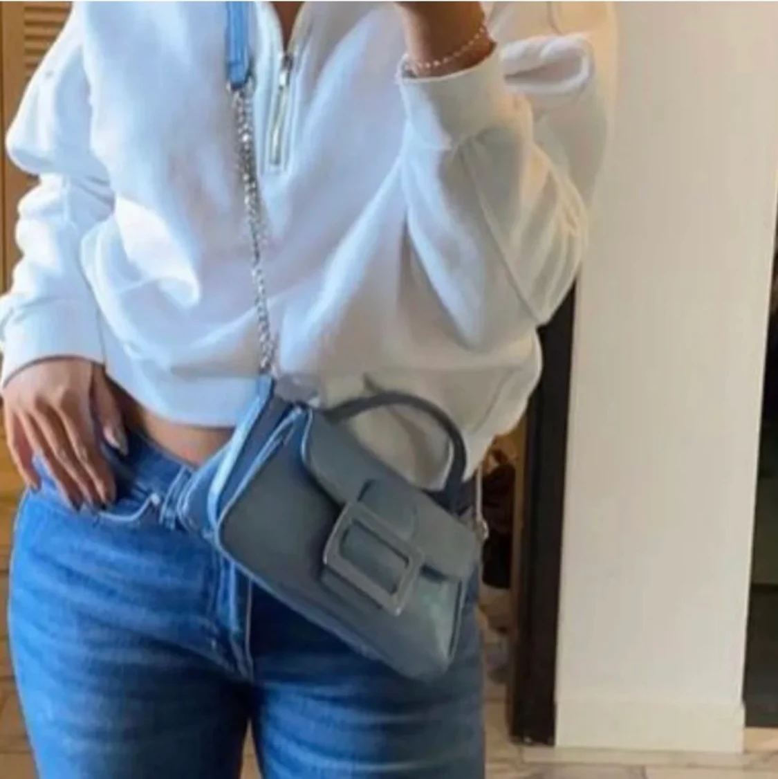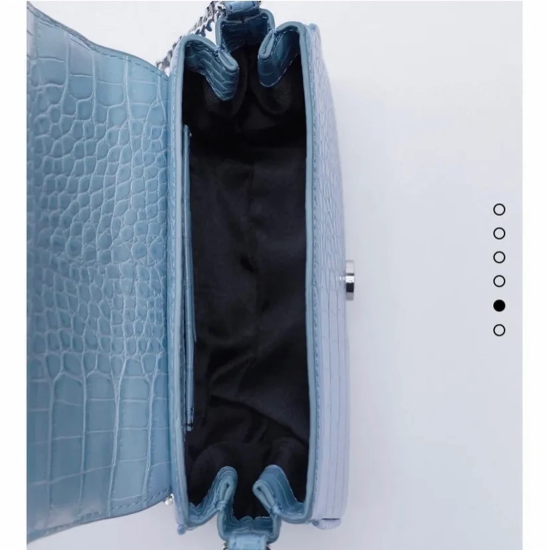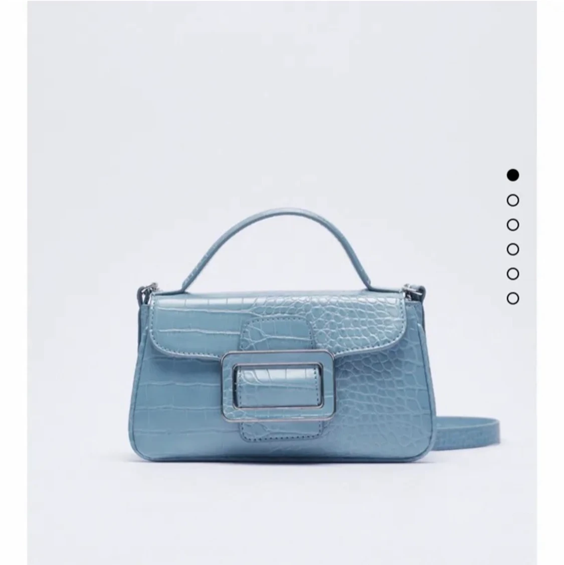Första bilden är lånad. Säljer en fin blå väska från Zara. Sparsamt använd.