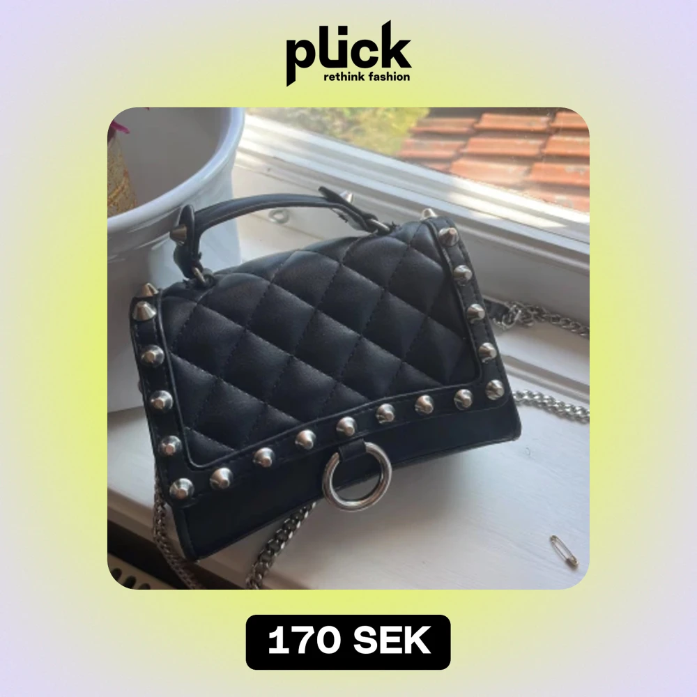 Säljer denna skitcoola svarta nitväskan från Zara💓 Jättefint skick, inga skavanker eller defekter! Nypris 400kr! Har både kort och långt band och rymmer telefon, plånbok, smink ja vad man nu behöver! Säljer även kjolen o tröjan så kika gärna på dem☺️