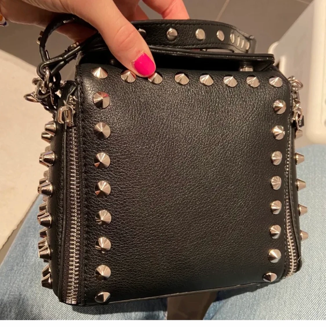 INTRESSEKOLL på denna väska, säljer för bra bud! Väskan är från Zara och är slutsåld och kommer förmodligen inte tillbaka. Har en defekt då ena dragkedjan låstnat men inget som man tänker på eller som påverkar så mkt