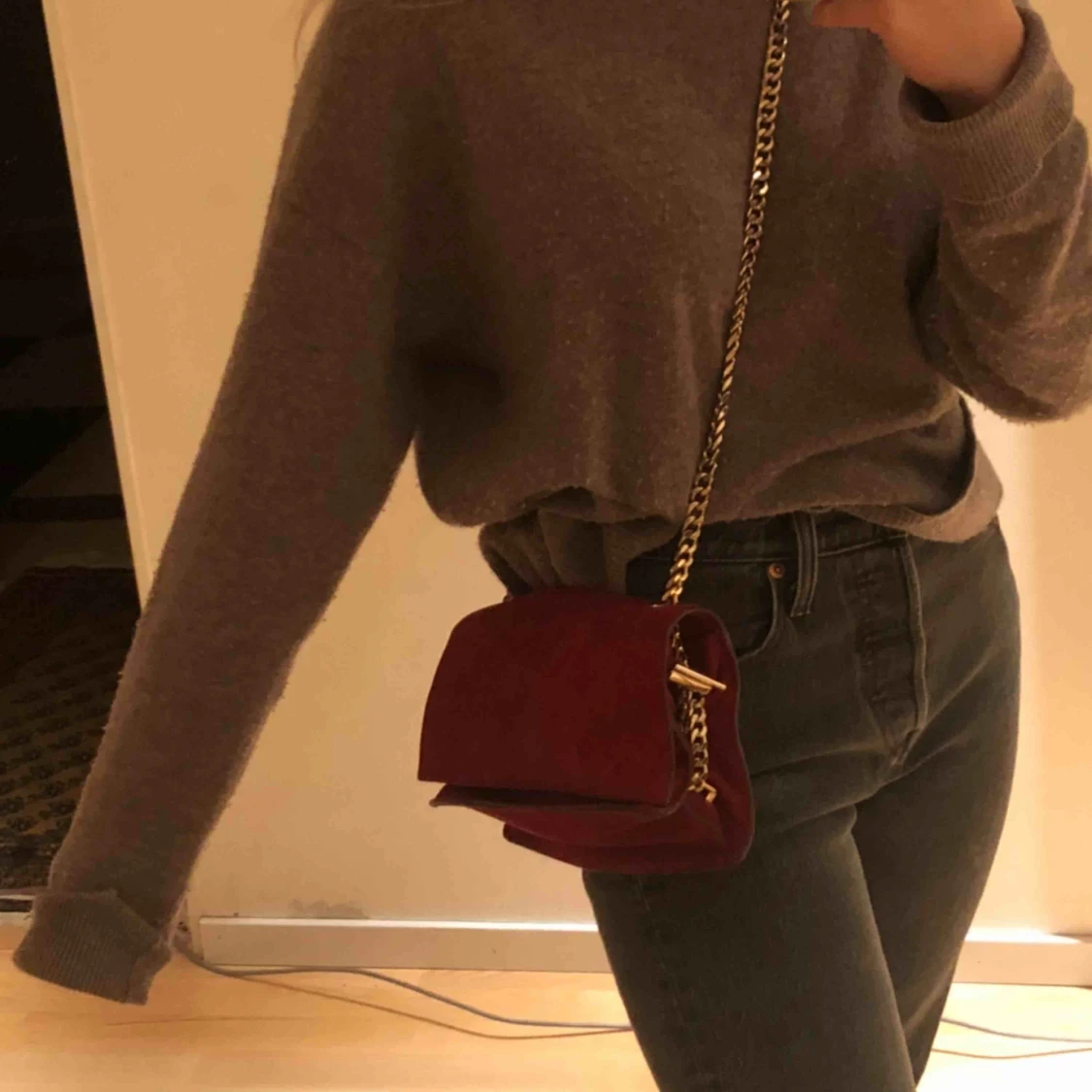 Röd cross-body väska i mocka imitation från Zara med guldkedja❣️var inte rädda för att förhandla!!