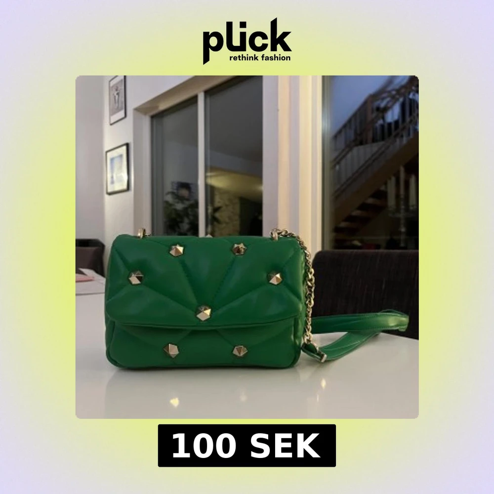 Sjukt cool väska med nitar i färgen grön från zara🙌, knappt använd och säljs pga att den inte kommer till användning💕 pris kan absolut diskuteras!