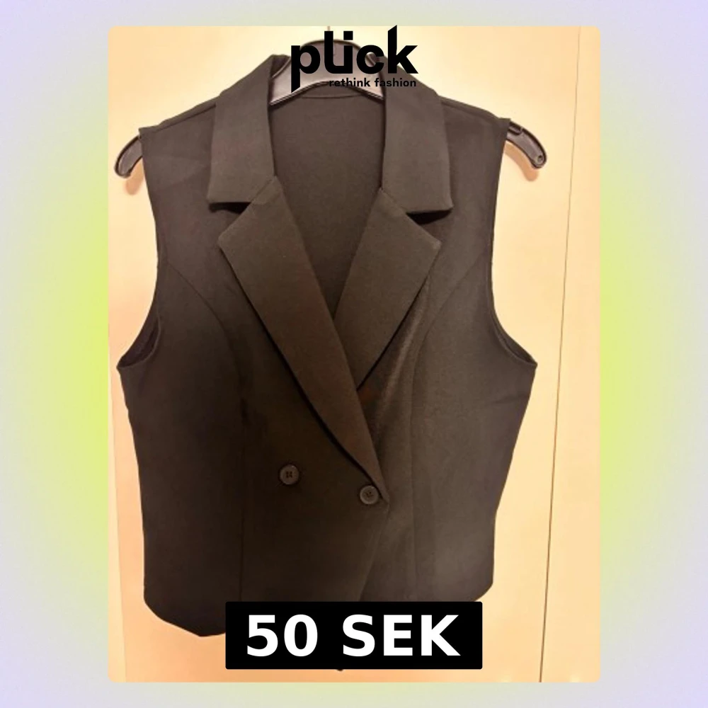 Stilren svart väst med breda slag och dubbelknäppning framtill. Västen har en klassisk kostymliknande design och är ärmlös, perfekt att styla över en skjorta eller t-shirt. Snygg och tidlös modell med figurnära passform.