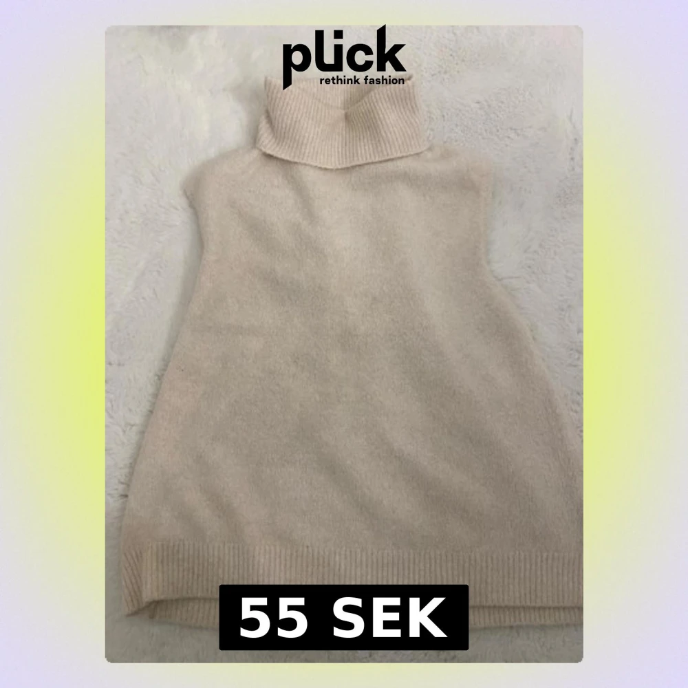 Mjuk och stilren beige stickad tröja med hög polokrage. Tröjan har en rak passform och ribbade detaljer vid krage och nederkant.