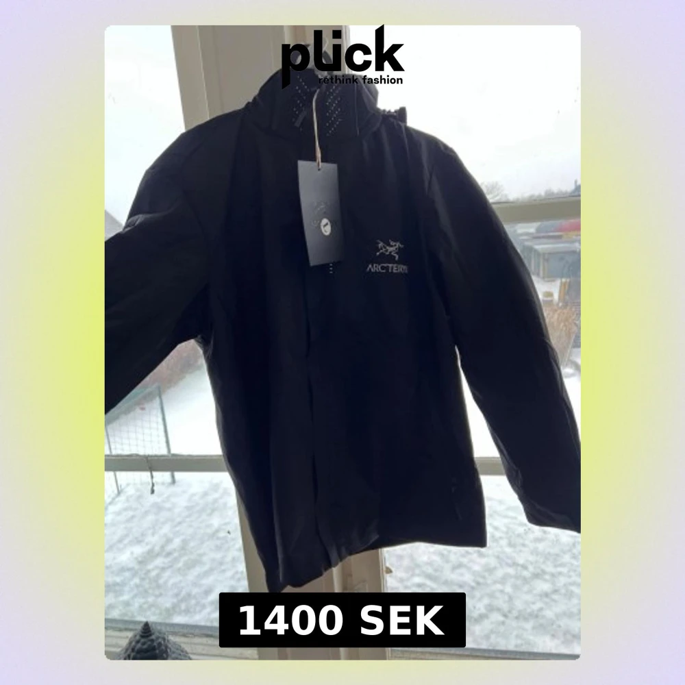 Snygg svart vindjacka från Arc'teryx med minimalistisk design och logga på bröstet. Jackan har huva och dragkedja framtill. Tillverkad i lätt och slitstarkt material som skyddar mot vind. Perfekt för dig som vill ha en stilren och funktionell jacka.