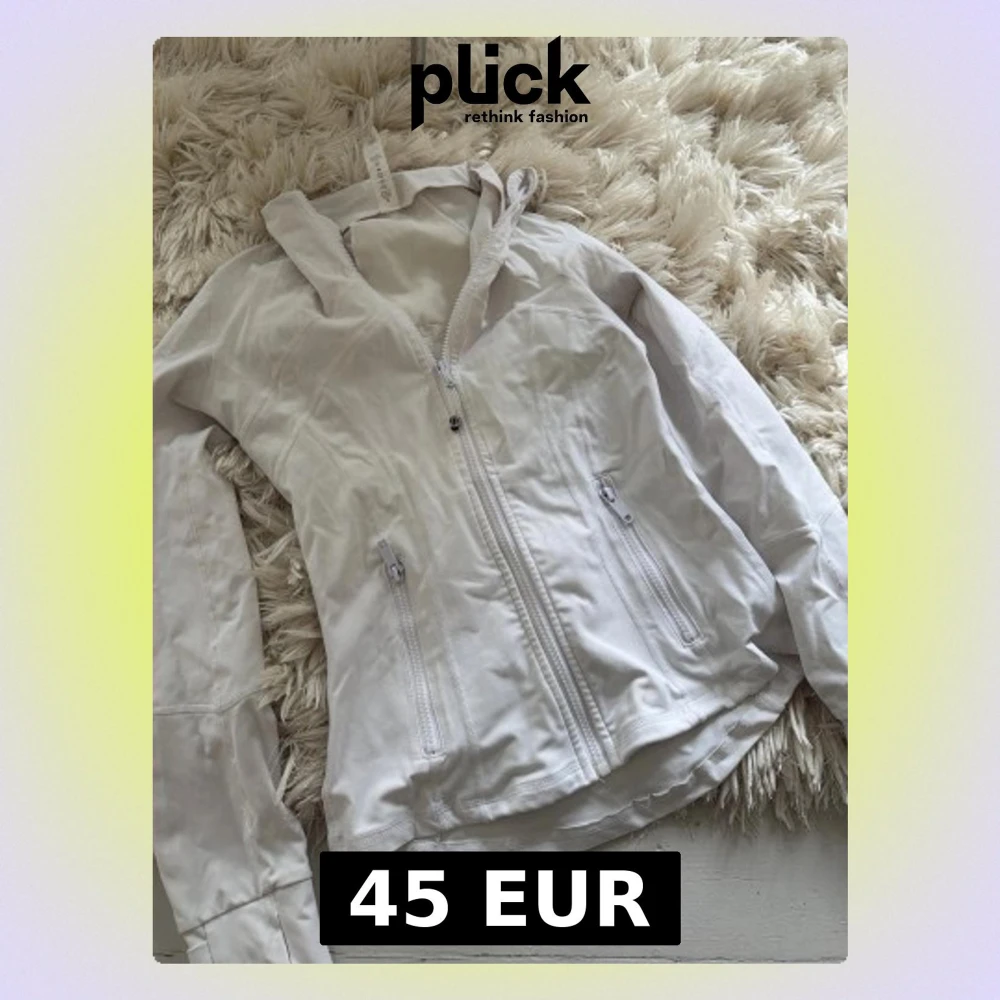 Snygg vit define jacket från ””lululemon””. Jackan har två fickor med dragkedja och är tillverkad i ett lätt material som passar perfekt för blåsiga dagar. Snygga sömdetaljer ger en sportig look. Perfekt för dig som vill ha en stilren och funktionell jacka.