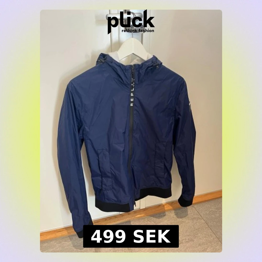 En snygg och tunn vindjacka från Replay. Den är i storlek M, men den sitter lite mindre. Passar bra på dig som har S-M. Väldigt bra skick!