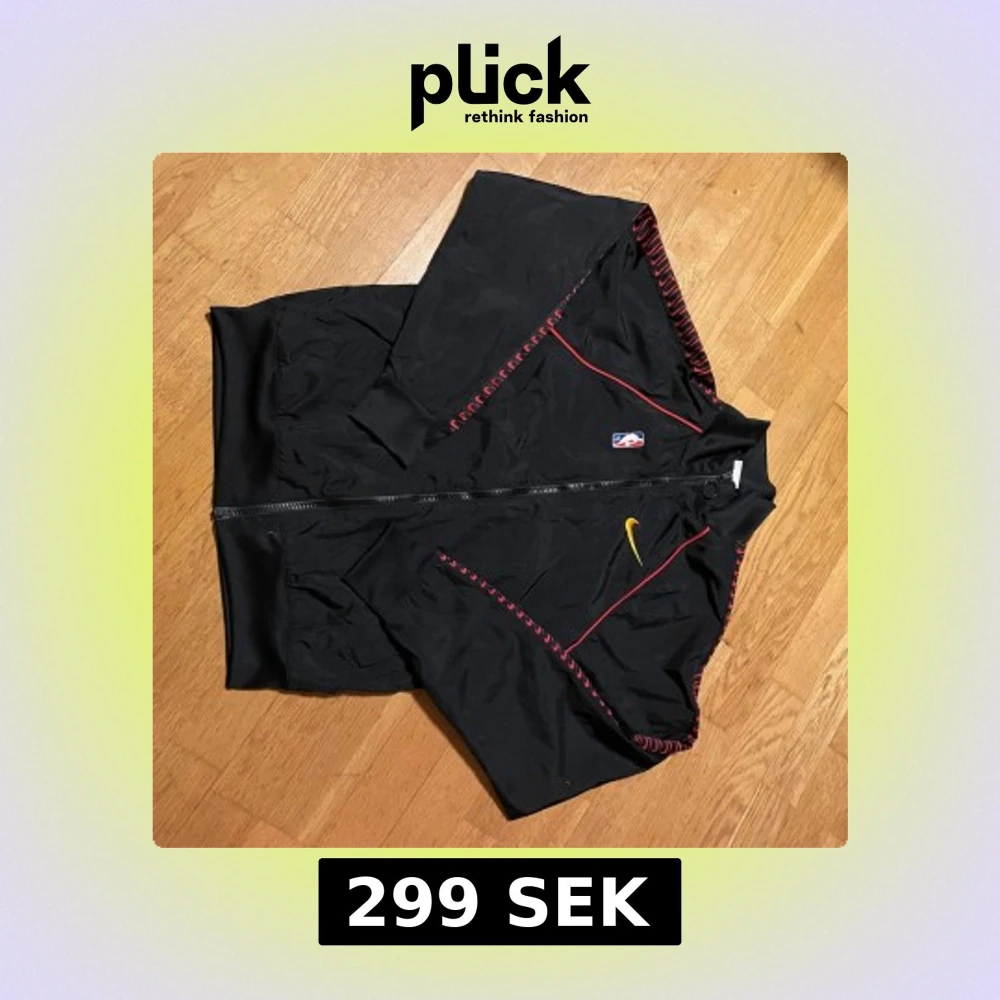Svart vindjacka från Nike med Miami Heat-tryck på ryggen och NBA-logga framtill. Jackan har röda detaljer längs ärmarna och gul Nike Swoosh på bröstet. Lätt material, dragkedja och ribbade muddar. Perfekt för basketfans som vill sticka ut.